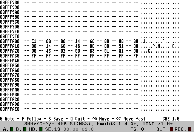 Anders als EmuTOS oder TOS 2.06 kann TOS 1.x nicht von IDE booten. Wer also Fan von TOS 1.04/1.06/1.62 ist (z.B. wegen bestimmter Spiele) und ein IDE-Interface wie z.B. die Lightning ST hat, musste also den Plattentreiber von Diskette oder einem ACSI-Laufwerk laden. Ich habe daher einen Patch für diese TOS-Versionen entwickelt, mit dem dieses nun auch von einem IDE-Laufwerk (also auch: CF-Karte, IDE/SD-Adapter, DOM) booten kann. Erfolgreich getestet wurde dies mit HDDRIVER und AHDI.